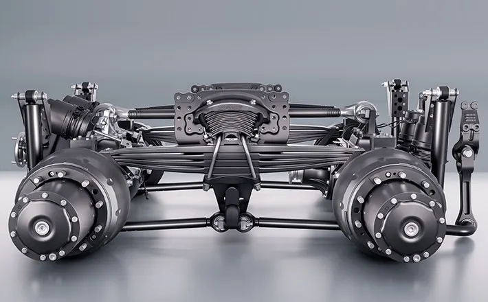 Atendendo todo tipo de operação e necessidade, são oferecidas dois tipos de suspensão traseira, pneumática e metálica. A suspensão pneumática traz conforto para o condutor e preservação para cargas frágeis e suscetíveis a danos, além de praticidade nas operações de engate e desengate do implemento. A suspensão metálica é indicada para operações em estradas de terra ou em condições ruins de conservação do pavimento, onde sua resistência traz confiabilidade e baixa demanda de manutenção. Em conjunto com suspensão metálica pode ser montado o robusto eixo traseiro com redução nos cubos, elevando sua capacidade máxima de tração para até 120 toneladas. Nas versões 6x4 com suspensão pneumática, o segundo eixo traseiro de tração pode ser desconectável e elevável, economizando combustível, pneus e pedágio, quando o conjunto estiver trafegando sem carga.