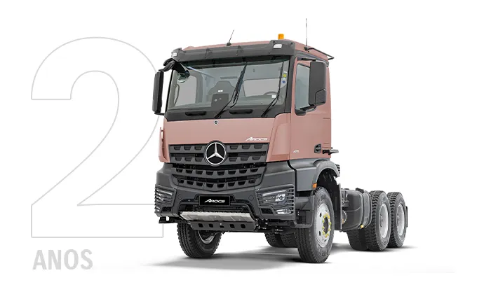 Os modelos da linha Arocs contam com 2 anos de garantia (1 ano do veículo completo + 1 ano do trem de força).