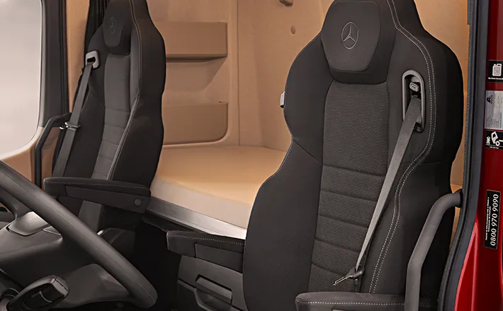 - Freio motor do motor Mercedes-Benz OM 471 com 580 cv de potência: Descidas mais rápidas, seguras, poupando o freio de serviço do caminhão.