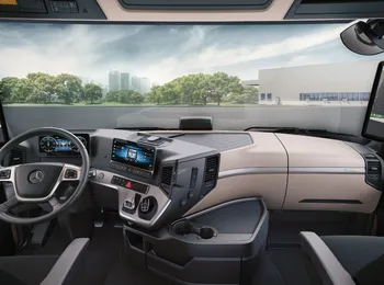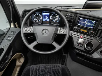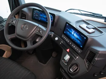 A quarta estreia mundial se refere ao posto de trabalho do caminhoneiro: o cockpit multimídia do Novo Actros é composto por duas telas grandes coloridas: a principal atrás do volante e a secundária touchscreen.