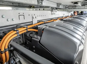 Como regra geral, as baterias eActros, linhas de alta voltagem e outros componentes de alta tensão são concebidos e fixados de forma a que, em caso de acidente, sejam cumpridos não só os elevados requisitos de segurança dos caminhões Mercedes-Benz, mas também as disposições legais e regulamentares. O sistema de alerta de temperatura da bateria integrado no caminhão elétrico monitora continuamente a temperatura das baterias de alta voltagem. Quando a temperatura está muito alta, o sistema de alarme na cabina emite um tom de alerta. O alarme também funciona quando o veículo está desligado. Do ponto de vista da construção, as baterias são protegidas em caso de colisão lateral por elementos de colisão especiais montados no quadro do chassi. O perfil de alumínio desses elementos permite que o máximo possível de energia seja absorvida. Integrados neles também estão sensores que podem detectar uma situação de colisão. Nesse caso, a bateria de alta voltagem é automaticamente isolada do resto do veículo. Para equipes de serviço de emergência, existem pontos de isolamento adicionais localizados sob os bancos, com os quais o sistema de alta voltagem pode ser desativado.