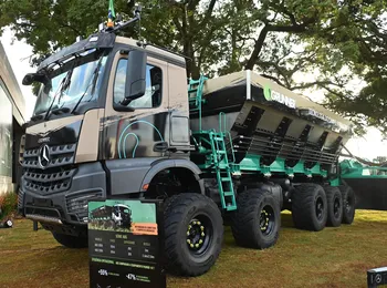 Após êxito do Mercedes-Benz Axor no setor canavieiro, Mercedes-Benz e Grunner apresentam máquina inteligente para uso na distribuição de sólidos