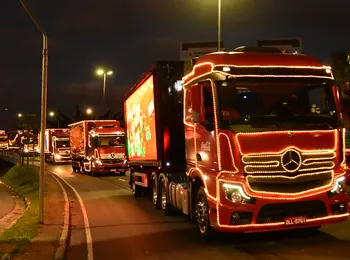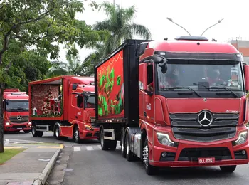 - Cinco caminhões extrapesados Novo Actros puxam as carretas da Caravana Iluminada 2021, que está levando a emoção e a alegria do Natal para públicos de todas as idades