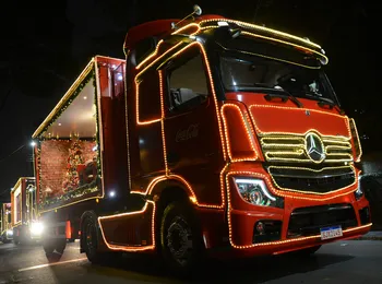 A tradicional Caravana Iluminada de Natal da Coca-Cola FEMSA Brasil – cinco carretas puxadas por caminhões Novo Actros – levou a magia do espírito natalino para os colaboradores da fábrica da Mercedes-Benz do Brasil em São Bernardo do Campo, no ABC Paulista. Na última sexta-feira, 26 de novembro, o comboio circulou pelas vias internas da planta industrial, despertando emoção e alegria por onde passou.