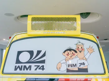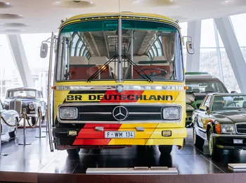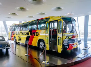 O modelo O 302 para aplicações rodoviárias se destaca na galeria de celebridades do Museu. O design chamativo com o logotipo “WM 74” (Copa do Mundo de 74), a inscrição “BR Deutschland” (República Federal da Alemanha) e a pintura nas cores nacionais preto, vermelho e amarelo dão uma indicação do seu uso anterior. Este foi o ônibus do time da Alemanha Ocidental durante a 10ª Copa, há 48 anos. Os jogos ocorreram de 13 de junho a 7 de julho de 1974 na Alemanha Ocidental. Dezesseis nações participaram daquela edição e cada uma delas tinha o modelo O 302 à sua disposição para todas as viagens, com o nome e cores de seus países. Em cima do teto, bandeiras dos respectivos times esvoaçavam ao vento.