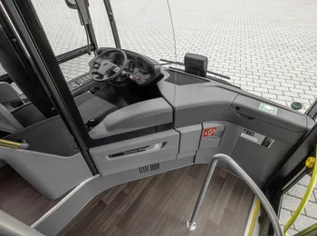 As luzes diurnas, faróis baixos e altos, faróis de neblina e luzes de ré são todos projetados com tecnologia LED de longa duração e à prova de falhas. Ao manobrar à noite, a iluminação surround – com luzes LED diretamente na frente do eixo traseiro – fornece suporte adicional. O sistema de câmera 360°, com câmeras nos quatro lados do ônibus, fornece uma visão panorâmica perfeita de uma perspectiva aérea e, portanto, segurança adicional ao manobrar e também em espaços estreitos.
