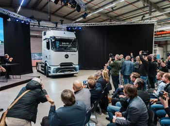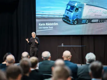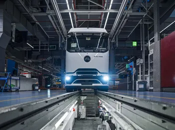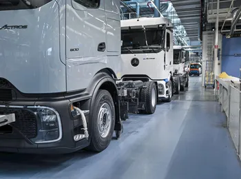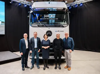 - Karin Rådström, CEO da Daimler Truck, e Daniela Schmitt, Ministra de Estado da Economia, Transportes, Agricultura e Viticultura da Renânia-Palatinado deram início à produção em série do novo Actros elétrico