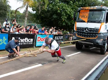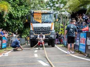 Recém-lançado no Brasil, o caminhão extrapesado Mercedes-Benz Arocs 8x4, basculante para severas operações da mineração e da construção pesada, estreou com sucesso num evento esportivo internacional no Brasil. Puxar o Arocs por 15 metros – um caminhão de 12 toneladas – foi a prova final do Força Bruta 2022, competição que estabeleceu duros desafios de força e resistência a quatro dos homens mais fortes do mundo.