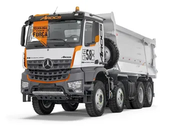 Caminhão extrapesado basculante, o Arocs 8x4 da Mercedes-Benz veio revolucionar as operações fora de estrada no Brasil, sendo indicado para a mineração, construção civil pesada e grandes obras de infraestrutura. Esse gigante tem capacidade técnica para até 58 toneladas de PBT – peso bruto total e 150 toneladas de CMT – capacidade máxima de tração, conforme as condições de operação. Ele está preparado para receber básculas de 20 a 24 metros cúbicos de capacidade volumétrica de carga.