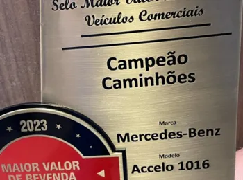Em sua 9ª edição, o selo Maior Valor de Revenda, baseado em estudo que leva em conta os três últimos anos de uso dos veículos, também premiou o Mercedes-Benz Accelo 1316 6x2 na categoria “Caminhão Médio”.