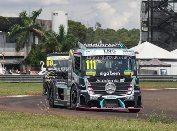 A força, excelente performance, robustez e confiabilidade dos caminhões Mercedes-Benz Actros nas pistas de corrida ganham novamente evidência no traçado de mais de 4.300 metros, Nesse desafiador ciruito, eles atingem altas velocidades e, consequentemente, precisam de maiores reduções com freadas mais fortes, especialmente na aproximação para o “S” do Senna e na Curva do Lago.