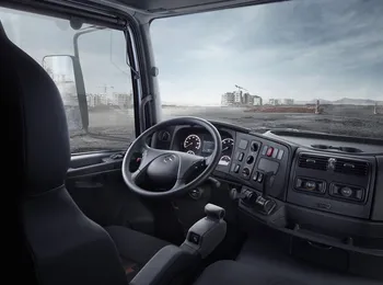 - Trem de força robusto e econômico se destaca pelo consagrado motor OM 926 LA e pelo câmbio totalmente automatizado Mercedes PowerShift de 12 marchas
