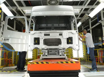 - Integrante do sistema de produção de veículos comerciais da Empresa, unidade mineira realiza soldagem e pintura das cabinas utilizadas em todos os caminhões, tanto para mercado interno e externo, como para reposição