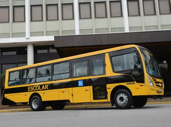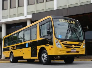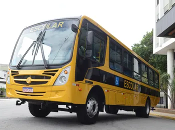 - Ônibus Mercedes-Benz, do padrão escolar ORE3, tem capacidade para 59 estudantes sentados, incluindo dois assentos para PCDs