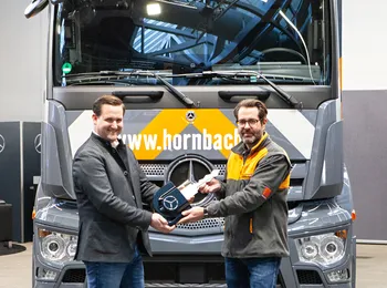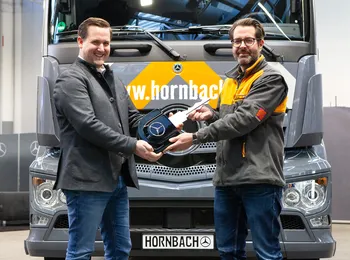 Stuttgart/Wörth – A empresa Hornbach Baumarkt AG conta agora com o eActros, caminhão Mercedes-Benz elétrico à bateria, para o transporte de distribuição pesada. Em uma entrega técnica em Wörth am Rhein, Dominik Hehl, Head de Vendas para Mannheim, Heidelberg & Landau da Mercedes-Benz Truck, entregou pessoalmente um eActros 300, um veículo de dois eixos, para Ingo Leiner, Membro do Conselho de Diretores da Hornbach Baumarkt AG. A empresa operadora de centros de bricolagem e jardinagem com sede em Bornheim (Palatinado) utilizará o eActros para transportar os pedidos diretamente para as casas dos clientes e para os canteiros de obras.