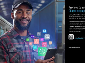 “Falando ainda em Peças e Serviços, entre as grandes novidades que estamos apresentando ao mercado, destaca-se também o lançamento do WhatsApp Mercedes-Benz Caminhões e Ônibus, que se trata do atendimento de peças e serviços via WhatsApp, por meio do número (11) 94111-1234”, informa Jefferson Ferrarez. “Uma ferramenta de fácil acesso e muito utilizada por todos nós. Disponível por 24 horas, o objetivo é oferecer ainda mais facilidade e conveniência para os nossos clientes. Assim, motoristas e frotistas encontrarão uma variedade de serviços e informações na palma da mão, como localizar uma concessionária mais próxima, consultar peças e serviços, adquirir treinamentos, acessar o manual de bordo do veículo e até comprar na Mercedes-Benz Truck Collection. Tudo isso pensando em agilidade e praticidade no relacionamento dos clientes com os concessionários e com nossa empresa”.