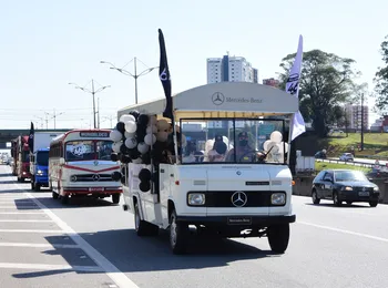 Decorados em homenagem ao aniversário da cidade e aos 65 anos da inauguração da primeira fábrica da Mercedes-Benz no Brasil, os veículos ainda fizeram paradas estratégicas o que atraiu pedestres para tirarem fotos com os modelos icônicos da marca.