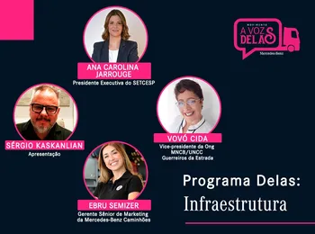 - “Programa Delas” reuniu Vovó Cida, vice-presidente da ONG Guerreiros da Estrada; Ana Carolina Jarrouge, presidente executiva do SETCESP, e Ebru Semizer, gerente sênior de Marketing Comunicação & Inteligência de Mercado Caminhões da Mercedes-Benz do Brasil, para uma troca de ideias sobre as condições oferecidas para as motoristas e as cristais nas estradas, pontos de parada e empresas