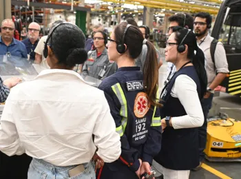 No período da tarde, os participantes visitaram a moderna Linha de Produção de Chassis de Ônibus da fábrica de São Bernardo do Campo, que se destaca por conceitos da Indústria 4.0. Esta é a mais moderna do setor, sendo referência em inovação, tecnologia, conectividade, Internet das Coisas, logística, segurança, ergonomia e qualidade de vida no trabalho.