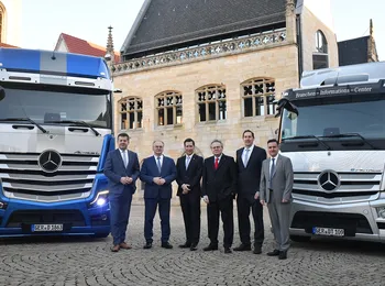 O anúncio oficial foi feito por Reiner Haseloff, Primeiro Ministro do Estado da Baixa Saxônia; Sven Schulze, Ministro da Economia, Turismo, Agricultura e Áreas Florestais; Daniel Szarata, Prefeito de Halberstadt; Jörg Howe, Representante Geral da Daimler Truck AG, responsável pela área de Comunicações Globais e Assuntos Externos; e Uwe Kazmeier, chefe de atendimento ao cliente e peças da Mercedes-Benz Trucks. O contrato para o estabelecimento da central de logística em Halberstadt foi assinado durante uma cerimônia com outros representantes do estado da federação, da cidade de Halberstadt e da Daimler Truck.