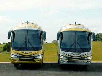 A carroceria Irizar I6, por sua vez, apresenta comprimento de 12,8m e dispõe de 44 poltronas, banheiro com operação touch, sistema automático de renovação de ar e calefação de piso, reutilização da água do ar condicionado e o purificador de ar Eco3 que aumenta a concentração de oxigênio, promovendo a desinfecção de bactérias e vírus e evitando, por exemplo, a transmissão da COVID-19.