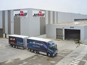 De acordo com a legislação, para tracionar reboques acima de 10 toneladas, os cavalos mecânicos de composições pesadas de caminhão e reboque devem apresentar um sistema de frenagem contínua. No eActros, esse sistema de freio contínuo é fornecido por um freio de reboque (High Power Brake Resistor, ou HPR, para abreviar - freio de alta potência, em português) para veículos elétricos à bateria. Na Logistik Schmitt, o eActros 300 (6x2), projetado para operação com reboque, vem equipado com um acoplamento de reboque de eixo central Rockinger. O reboque que acompanha é um reboque de eixo central com carroceria baú de cortina lateral Junge. Com comprimento interno de 7.280 mm, ele ostenta um peso bruto permitido de 18 toneladas.