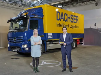 Um dos primeiros eActros, primeiro caminhão elétrico de produção em série movido a bateria da Mercedes-Benz, foi entregue à empresa prestadora de serviços de logística DACHSER. Karin Rådström, CEO da Mercedes-Benz Trucks, entregou pessoalmente um eActros 300 a Stefan Hohm, executivo chefe da área de Desenvolvimento (CDO) e membro do Conselho de Administração da DACHSER, durante uma reunião com clientes em Wörth am Rhein.