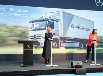 - Karin Rådström: "Estamos iniciando a produção em série do eActros, primeiro caminhão elétrico movido a bateria da estrela de três pontas, em Wörth. O veículo tem um significado muito especial para a fábrica: o futuro da Mercedes-Benz quanto à produção de caminhões está apenas começando. Queremos expandir a produção em série de nossos caminhões elétricos aqui, em Wörth”