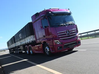 - Actros mix-road é destaque no transporte de grãos, operando em estradas e vias não pavimentadas nas áreas agrícolas