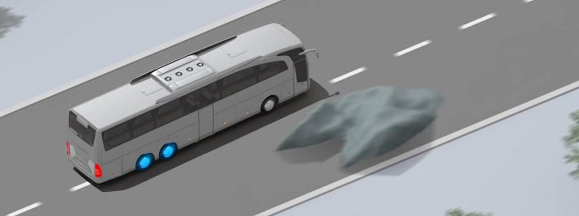O ESP® monitora, entre outros parâmetros, a aceleração transversal do ônibus. Caso o ônibus atinja, em curvas longas – por exemplo, saídas de estrada – ou em mudanças de faixa rápidas, um estado de condução crítico, a velocidade do veículo é reduzida automaticamente, de forma a restabelecer a estabilidade de condução. O ESP® é comparável com o sistema correspondente utilizado em automóveis, mas oferece funções adaptadas para o serviço em ônibus.