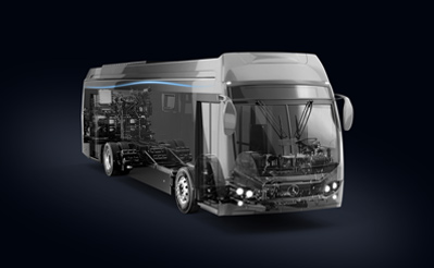 Para recarregar os veículos na garagem ou no terminal, as modernas células de liga de níquel-manganês-cobalto (NMC) utilizadas pela Mercedes-Benz são apropriadas para uma rápida recarga de até 03 horas. Podendo ser equipado com três a seis pacotes de bateria onde podem ser integrados e distribuídos pelo teto e pela traseira do eO500U. Cada pacote de bateria é composto por 9 módulos e cada módulo é composto por 600 células. A capacidade nominal de cada pacote de bateria é de 98 kWh, gerando um total de 588 kWh na configuração máxima de 6 pacotes.